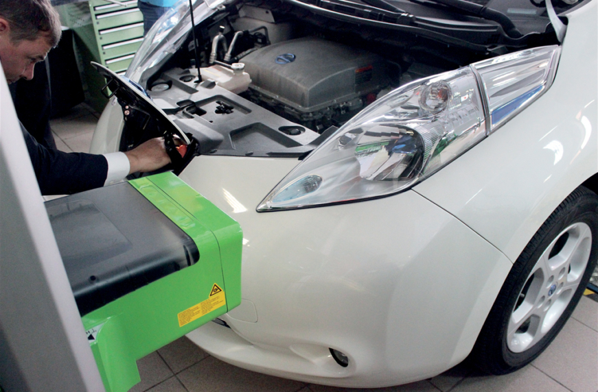 1) має підготовку та діагностичні прилади для «спілкування» з електронним обладнанням електроприводу (яке, звісно, відрізняється від машин з ДВЗ);