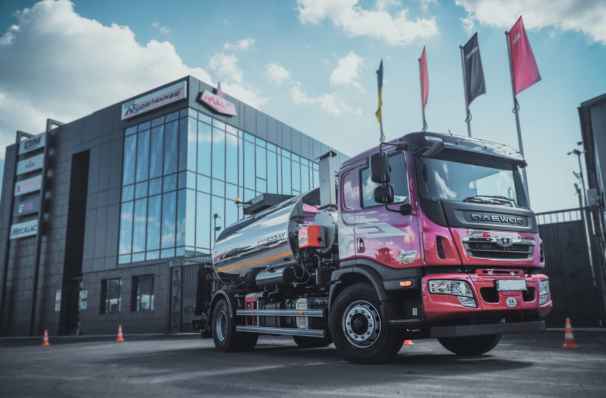 В дорожном строительстве гудронатор является одним из основных базовых автомобилей, которые используются для асфальтирования дорог и малых площадей, текущего и капитального ремонта асфальта. На днях известная отечественная компания «Будшляхмаш» показала свою очередную новинку – автогудронатор, выполненный на шасси грузовика Daewoo Maximus HC2AA.