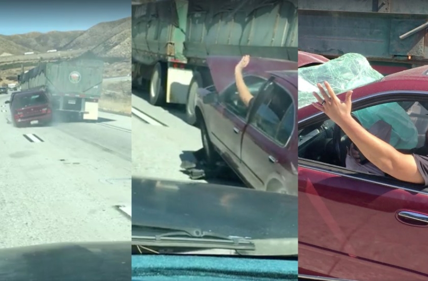 Going home coming up the freeway on the 15 and this is what I saw wow intense the poor guy got drug at least 4 miles