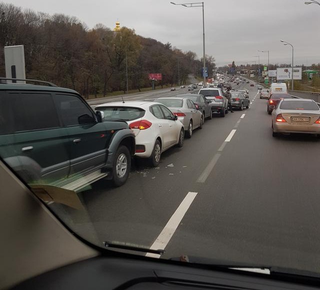 ДТП в Києві сталася на Наддніпрянському шосе, біля з’їзду з Дарницького мосту, близько 7.40 ранку. Аварія вийшла доволі масовою: за різними даними зіткнулися від 10 до 12 автомобілів. Це одна з найбільших ДТП у столиці за останній час.