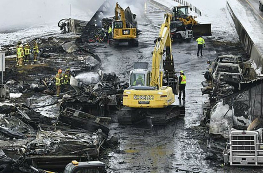 Перший сніг і шквальний вітер застали водіїв зненацька і стали причиною виникнення масштабного ДТП в штаті Міннесота, США. Спочатку не змогли впоратися з керуванням на слизькій дорозі водії двох вантажівок. Вони зіткнулися, перегородивши частину шосе. Потім в них, за інерцією, один за іншим врізалися легкові автомобілі та інші вантажівки. Загалом в аварії постраждали 29 машин, з яких — 15 фур і 14 легкових авто.
