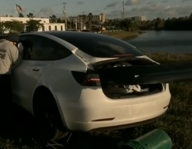 Настоящий второй день рождения может праздновать владелец электрокара Tesla Model 3, которой словно шашлык нанизался на «шампур-отбойник» вдоль одной из дорог американского городка Дейд Каунти, штат Флорида.