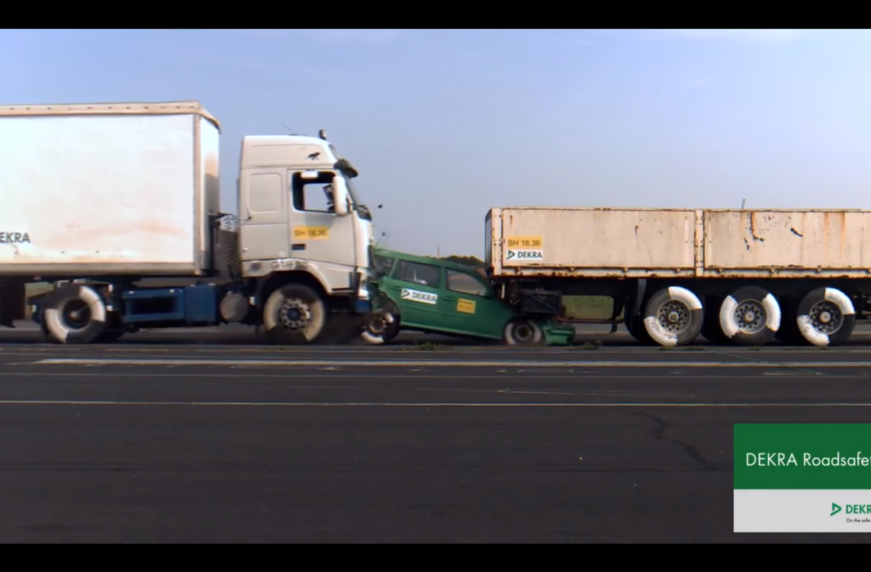 Кстати, к большому счастью, это не реальная ситуация на дороге, а краш-тест немецкой ассоциации DEKRA, наглядно демонстрирующий, что может быть от такого столкновения.