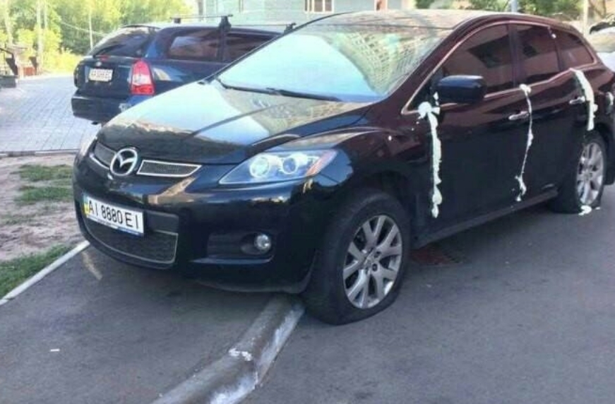 У результаті на автомобілі спустили колеса, а дверні прорізи задули монтажною піною.