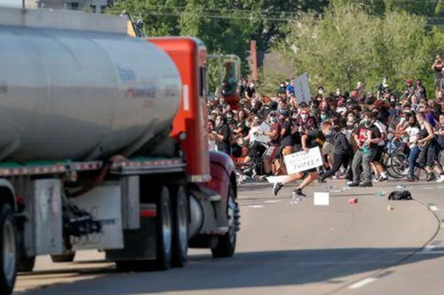 В ходе массовых беспорядков в США под ударом митингующих оказались и магистральные автопоезда