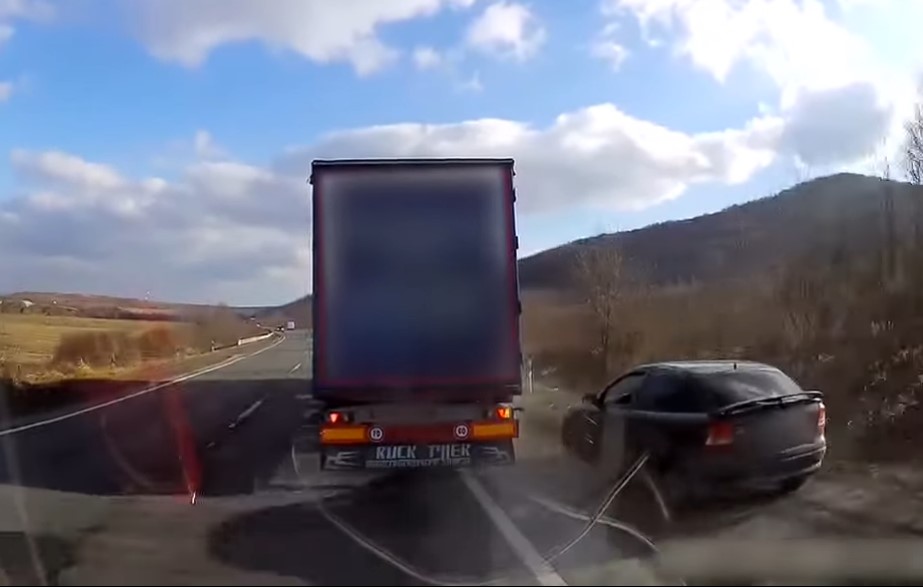 На оперативном видео показано, как водитель фуры мастерски заблокировал автомобиль Opel Astra на одной из трасс Закарпатской области, оказав услугу патрульным полицейским