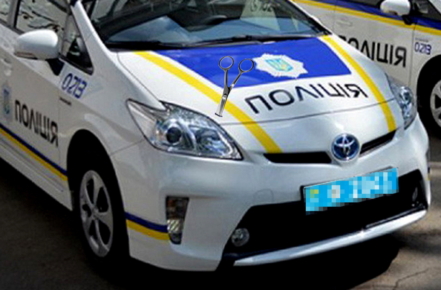 Неадекватний водій пробив ножицями капот поліцейського Toyota Prius (+Фото)