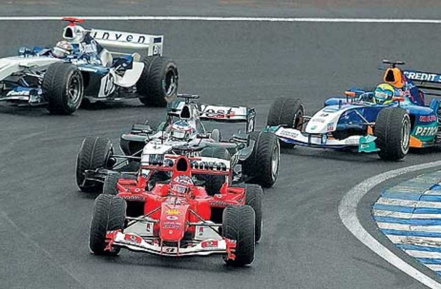Дело в том, что незадолго до гонки над трассой прошел довольно сильный дождь. Естественно, большинство пилотов решило стартовать на «мокрых» покрышках (как оказалось впоследствии, этого не сделали лишь трое – Алонсо, Вильнев и Култхард). Старт Баррикелло выиграл, однако буквально двумя поворотами позже его обогнал прорвавшийся с третьего места Райкконен. Рубенс напрягся и к концу третьего круга вернул себе лидерство. А на четвертом круге в боксы отправился Ральф Шумахер, и всем стало ясно – трасса подсохла настолько, что есть смысл заменить «мокрую» резину «промежуточной». И вот тут-то Ferrari, как говорится, «протормозила». Монтойя и Райкконен «переобулись» на пятом круге, Баррикелло – на шестом. Круг, один-единственный круг решил судьбу гонки! Лишние четыре километра, пройденные Рубенсом не на тех покрышках, отбросили его с первого места на шестое… После этого третью итоговую позицию можно считать большой удачей.