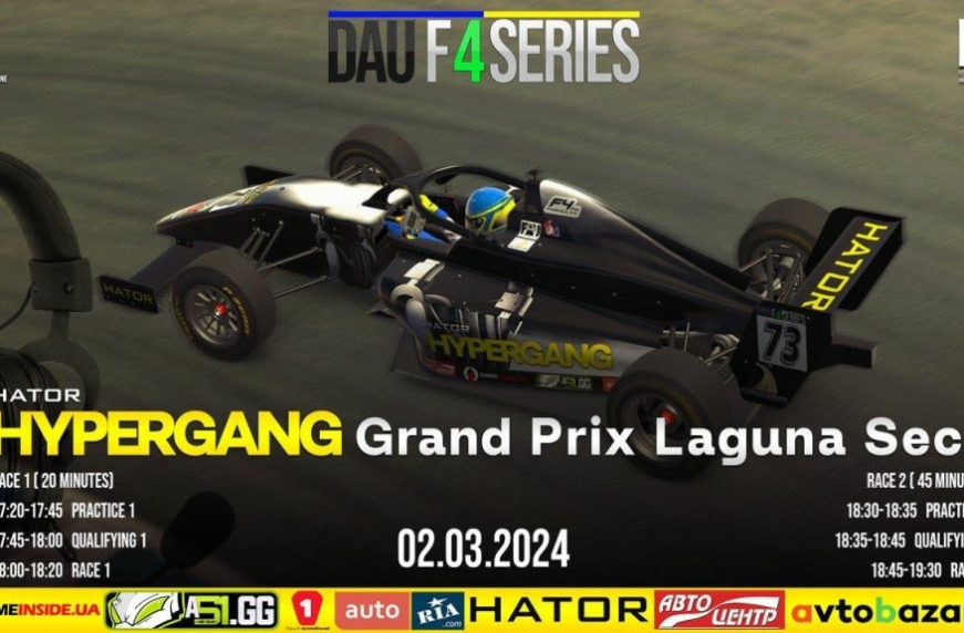 2 березня 2024 року Комісія Цифрового Автоспорту запрошує на ЧЕТВЕРТИЙ етап HYPERGANG Grand Prix Laguna Seca Міжнародної Серії змагань на Формулах-4 під назвою DIGITAL AUTOSPORT OF UKRAINE: F4 Series-2024. Season 1 (DAU F4 Series) на симуляторі iRacing.