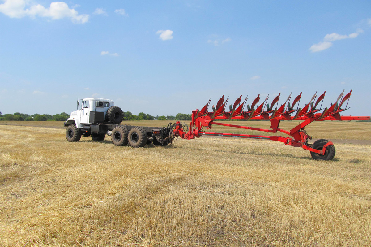 Автотрактор на шасі КрАЗ оснастили новим плугом