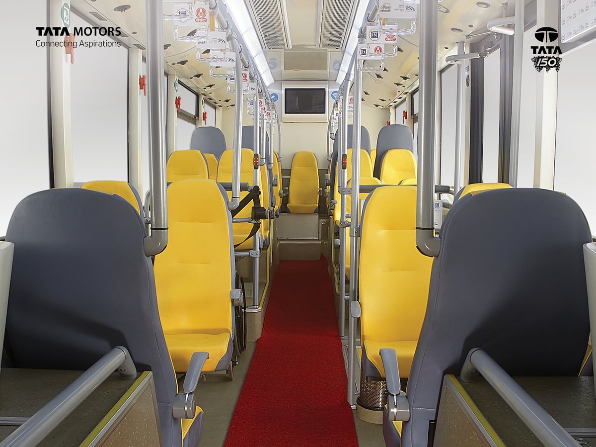 Автобус Tata Starbus Hybrid имеет длину 11 980 мм, ширину 2517 мм и высоту 3463 мм. Салон имеет низкий уровень пола – высотой 400 мм, который имеет 31 место для сидения. Есть все необходимое для перевозки людей с ограниченными физическими возможностями. В салоне установлены наглядные информационные табло, система видеонаблюдения и USB-разъемы для зарядки девайсов.