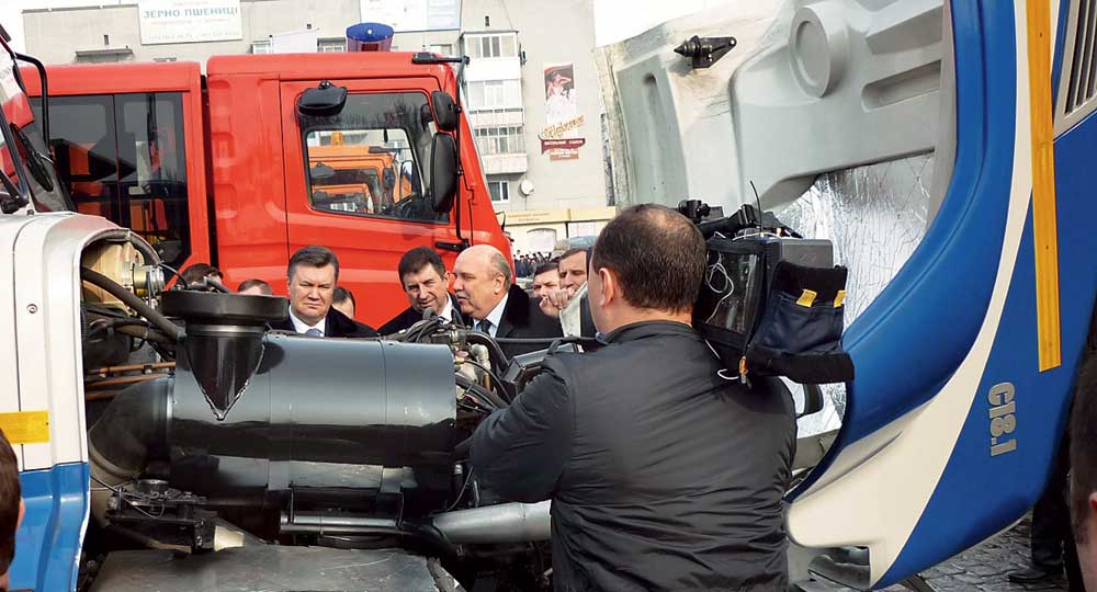 Президент Украины Виктор Янукович во время рабочего визита в Кременчуг 16 февраля ознакомился с новыми моделями автомобилей КрАЗ.