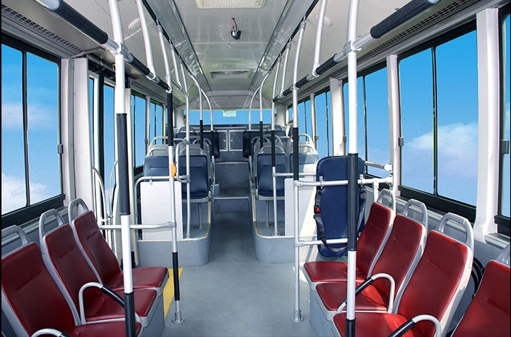 Низкопольный салон Foton AUV BJ6105 вмещает до 80 пассажиров (мест для сидения – 23)
