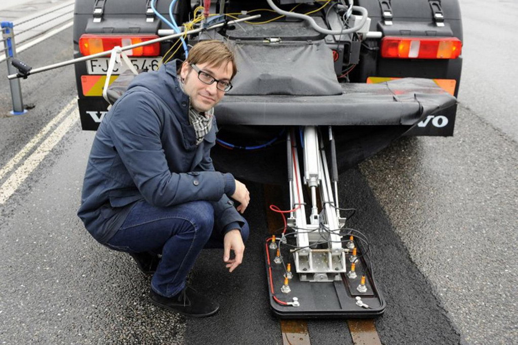Концерн Volvo сегодня является одним из ведущих разработчиков грузовиков и автобусов на электротяге. Одной из главных задач здесь является увеличение запаса хода и уменьшение веса батарей. Так, например, уже не один год проводятся испытания городских электробусов, способных быстро подпитывать свои батареи на остановках. А как же быть с транспортом, работающим на больших расстояниях – например, магистральными грузовиками, которые останавливаются не часто? Оказалось, выход есть. Инженеры Volvo Group совместно со своими коллегами из университета шведского города Лунд разработали интересное техническое решение. Контактные провода (один плюс, другой – минус) можно расположить прямо на поверхности дороги.