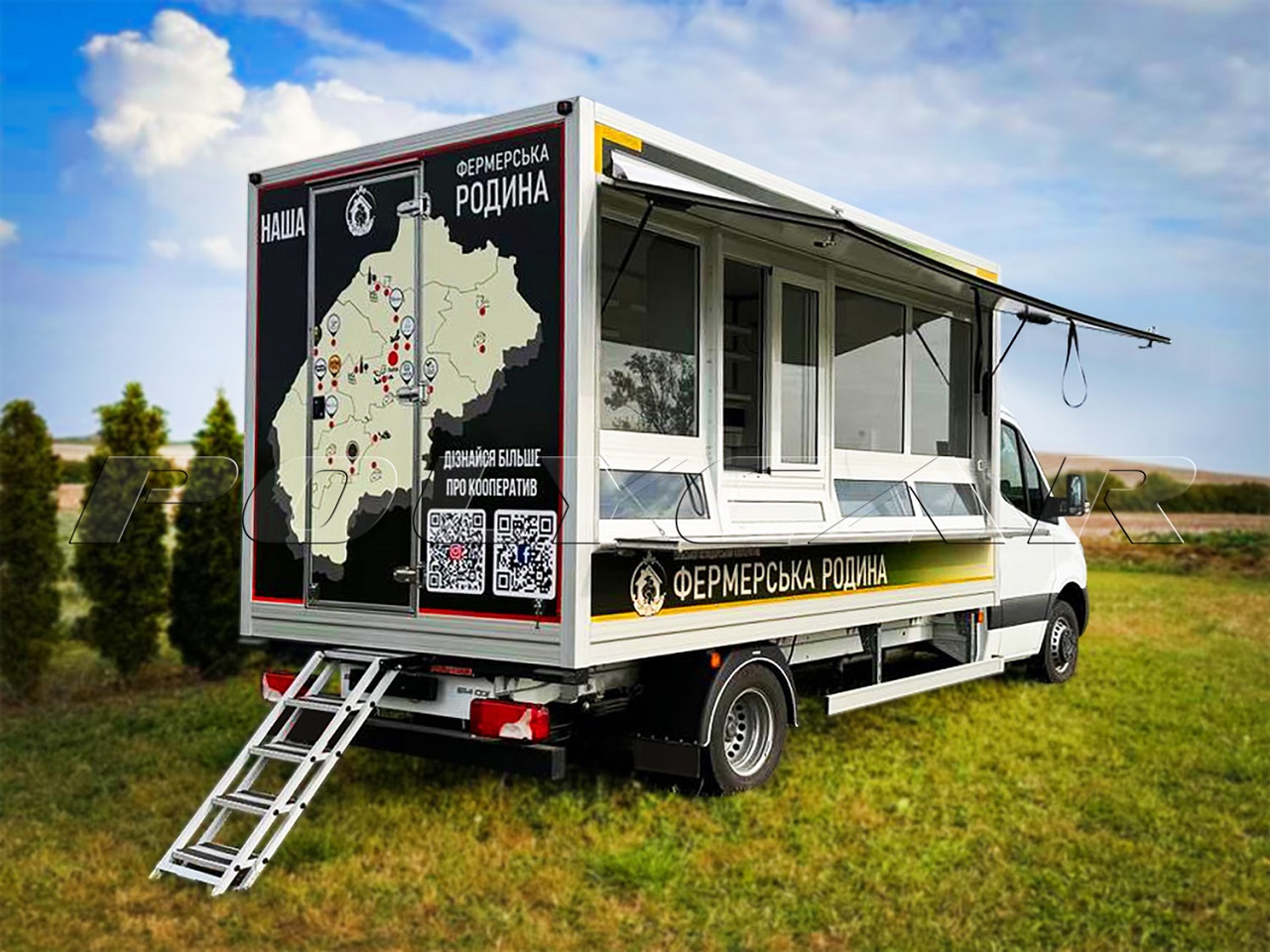 В умовах повномасштабної війни росії проти України особливо актуальною стала своєчасна доставка продуктів харчування населенню в тих районах, де звичайні магазини з тих чи інших причин не працюють. І тут на допомогу приходять автолавки, спеціально пристосовані для продажу хліба, м’яса, овочів та молока. Саме такий виїзний магазин на шасі Mercedes-Benz Sprinter 514 CDI побудували нещодавно в компанії «Спец-Ком-Сервіс» (Polycar).
