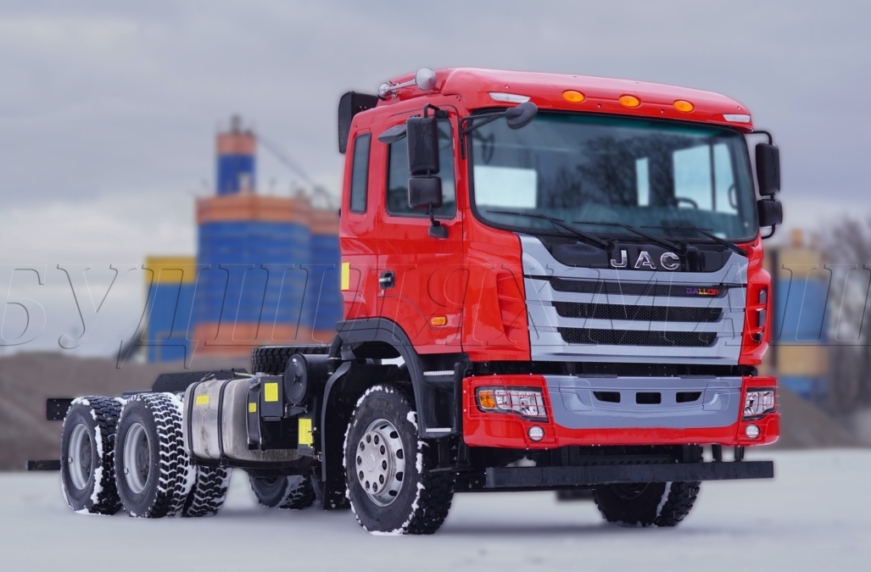 На вітчизняному ринку вантажівок важкого класу прибуло – група компаній «Будшляхмаш» уперше почала пропонувати в Україні автомобілі JAC колісної формули 6х4. Модель JAC N350 представлена у вигляді шасі, яке має вантажопідйомність 24,5 т і розраховане на повну масу 35 т. У результаті на його базі можна зробити автомобіль різної спеціалізації: самоскид, у тому числі зерновоз, сміттєвоз, автопаливозаправник, автокран, автобетонозмішувач, дорожню комбіновану машину та ін.