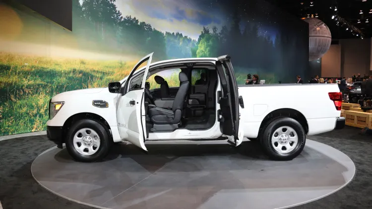 На Чикагский автосалон 2017 также привези и пикап Nissan Titan c новым вариантом кабины King Cab. В ней первая пара дверей открывается по ходу, а вторая пара (т. н. половинки) против хода, центральной стойки при этом нет. Раньше, напомним, модель была доступна только с полноценной четырехдверной кабиной или одинарной Single Cab. Новый вариант кабины – King Cab можно заказать как на версии на 0,5 т груза, так и на более мощные Titan XD.