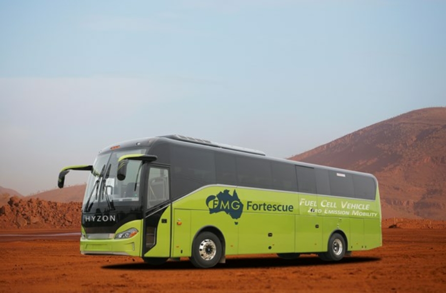 Fortescue Metals Group уклала контракт на поставку 10 туристичних автобусів Hyzon, побудованих за індивідуальним замовленням, в гірничодобувному центрі Christmas Creek, де літні температури зазвичай перевищують 40 С.