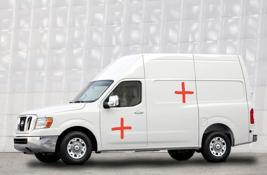 Сьогодні для розвезення гуманітарної допомоги в регіони України волонтерам передані різні машини. Насамперед для цих цілей беруть комерційні автомобілі, серед яких трапляються й досить цікаві моделі із США. Цьому приклад – розвізний фургон Nissan сімейства NV. Днями одна така біла машина була помічена з червоним хрестом на борту.