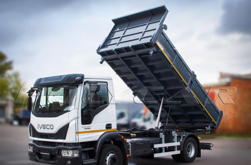 На шасі IVECO Eurocargo ML120, розрахованого на повну масу 12 т, встановлено самоскидний кузов тристороннього розвантаження. Внутрішній об’єм сягає 7 кубометрів. Платформа завдовжки 4800 мм, завширшки 2550 мм та заввишки 600 мм має сталеву конструкцію: товщина підлоги складає 6 мм, а бортів – 4 мм. Всі металеві елементи надбудови, включаючи надрамник, покриті двокомпонетною акриловою ґрунтовкою та пофарбовані.