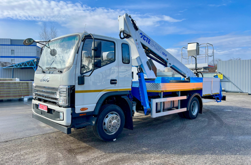 Кременчуцький завод комунальної техніки «Альфатекс» днями передав замовнику свій новий продукт. Це автовишка CTE B-Lift 230HY, встановлена на шасі JAC N120. Чотирьохсекційна стріла коробчатого профілю забезпечує робочу висоту підйому 22 м і максимальний виліт 11,3 м. Кошик має вантажопідйомність 300 кг та електроізольований до 1000В.