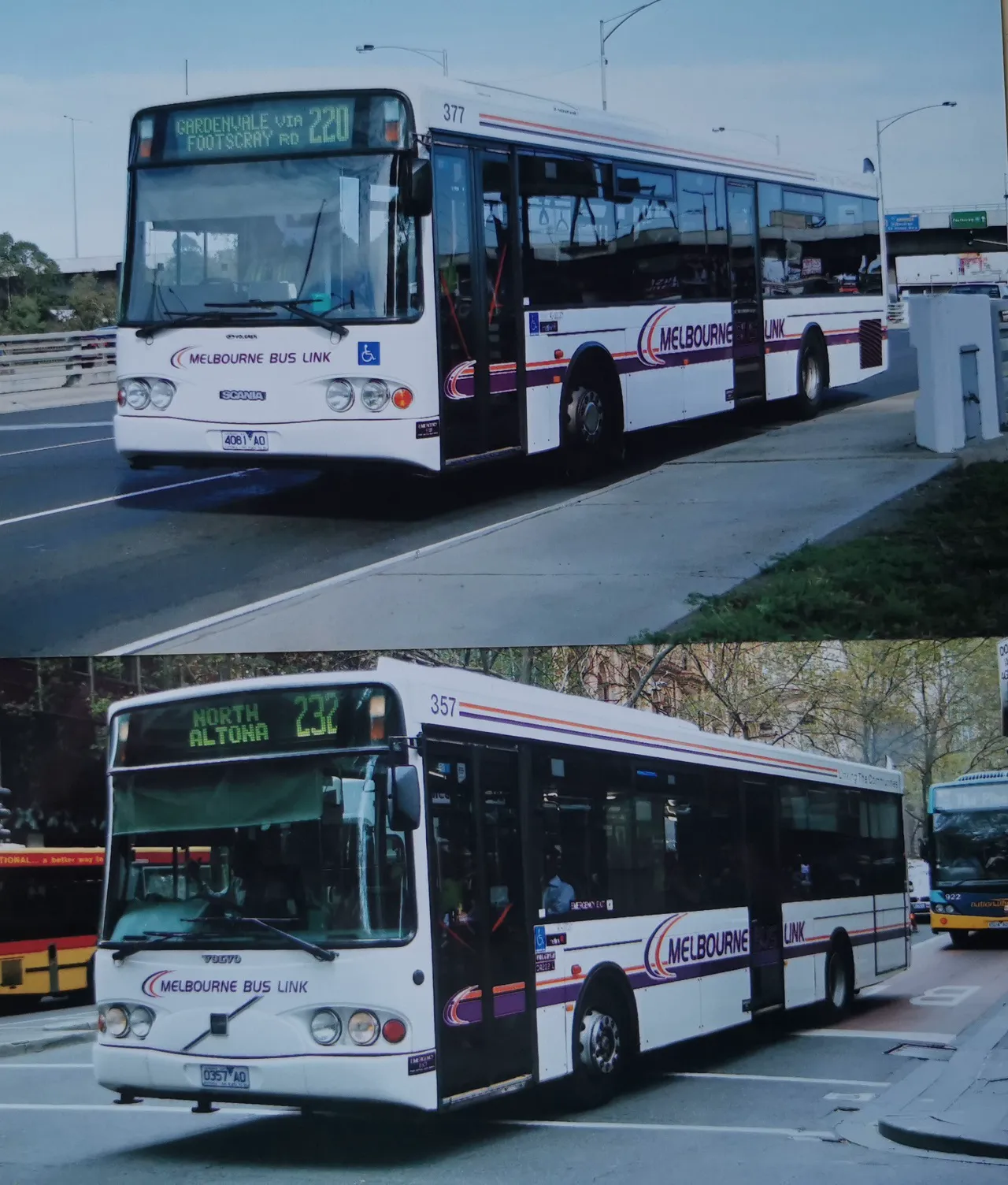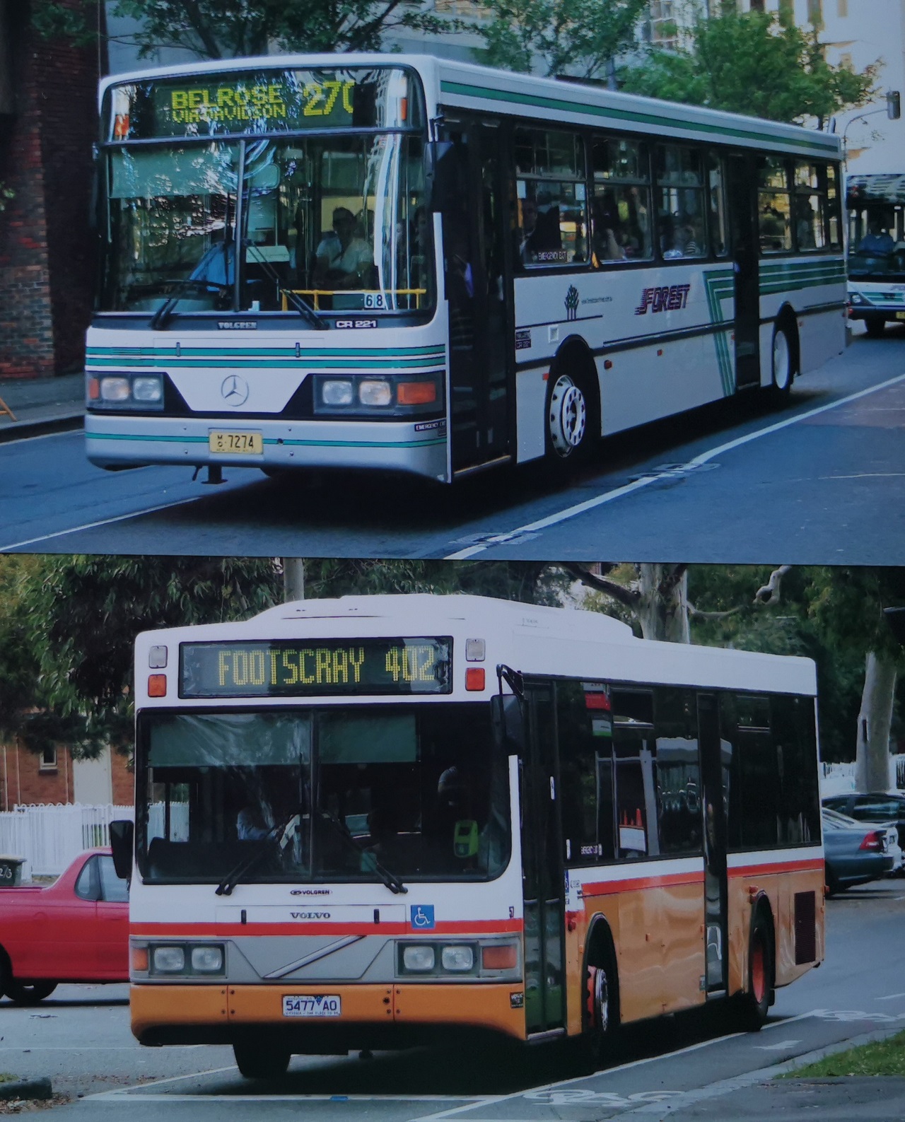 Два автобуси Volgren СR 222L. Зверху – на шасі Scania L94UB, випуску 2002 року. Нижніій – на шасі Volvo B10BLE, випуску 1999 року.