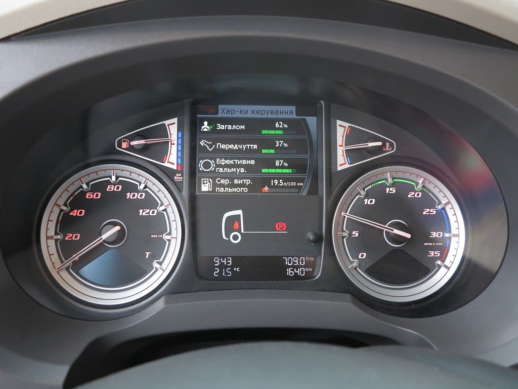Наш первый подопытный LF оказался в самом легком исполнении – с технически допустимой полной массой 7,5 т. Тестируемый автомобиль был загружен и весил ровно 7 тонн. Заводим мотор и трогаемся. Оцениваем новую, 5-ступенчатую механическую коробку передач марки Eaton (это, кстати, был единственный автомобиль на тесте с «механикой»). Передачи включаются легко, четко.