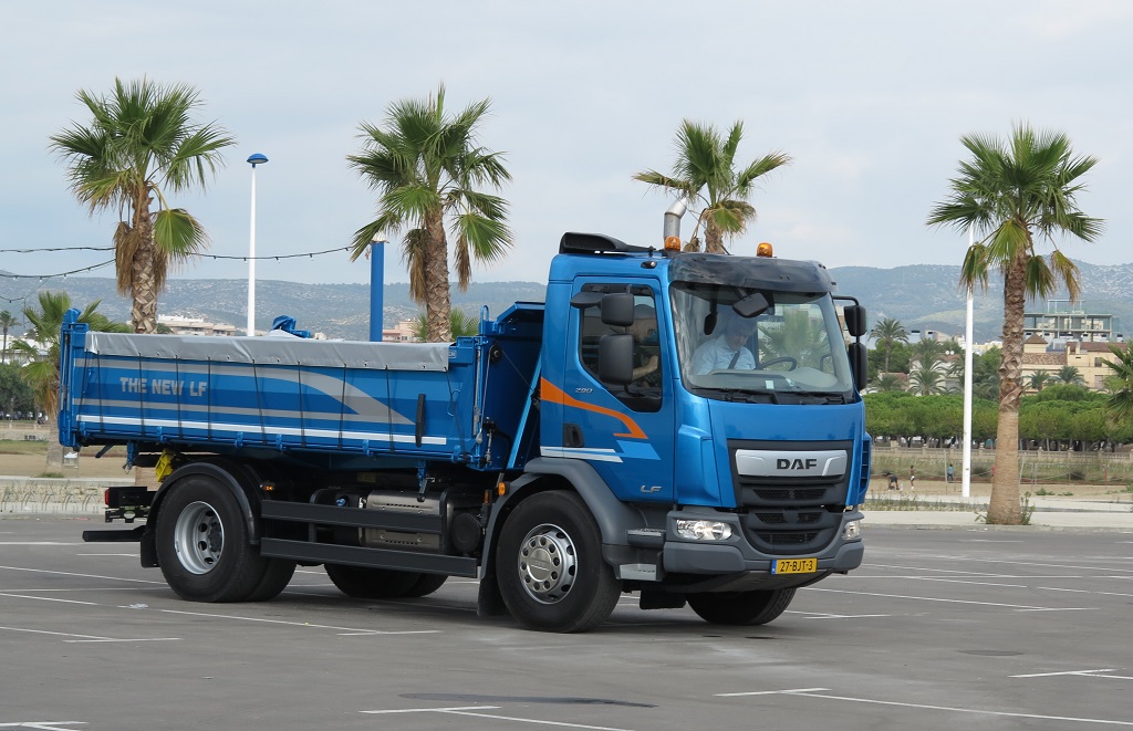 DAF LF290 с самосвальным кузовом Meiller. Внешне строительную серию легок отличить по черной, без хрома решетке радиатора.