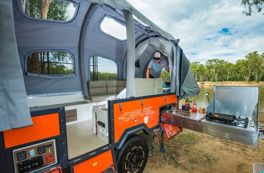 Компания Opus Camper прославилась на весь мир уникальными прицепными кемперами, которые раскладываются в комфортабельные жилые палатки всего за 90 секунд. Изюминка прицепов – запатентованная система Air Opus, представляющая собой мощный насос, который, собственно говоря, и надувает домик для туристов.