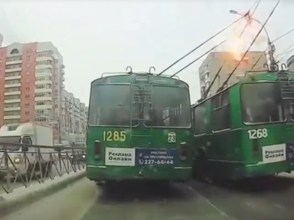 Невероятный случай соревнований двух троллейбусов произошел на одном маршруте Новосибирска. В итоге – море искр и коллапс на дороге.