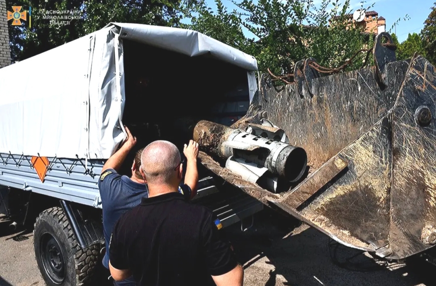 У минулі вихідні застряглі в асфальті снаряди від РСЗВ «Смерч» приїхали витягувати екскаватор-навантажувач Caterpillar B730 і повноприводний Mercedes-Benz Unimog. У цьому випадку залишки боєприпасів не становили загрози.