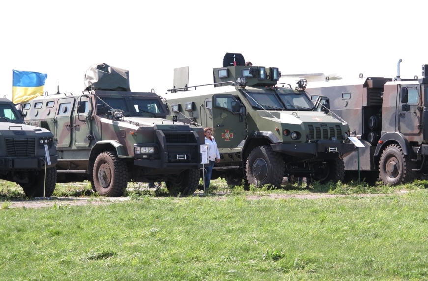 Поруч стояв бронеавтомобіль «Варта», виготовлений на шасі повнопривідної вантажівки МАЗ (4х4) концерном “Бронетехніка України”. Повна маса – 16 600 кг. Турбодизель – 300 к.с. Витрата палива на шосе – 35 л на 100 км. Ємність бака – 350 л. Максимальна швидкість – 120 км/год. Посадкових місць – 2+8. Озброєння – 12,7-мм кулемет. Клас захисту броні – 6. Днище – протимінне, V-подібне. За словами одного з військових, ціна автомобіля становить 7,2 млн грн.