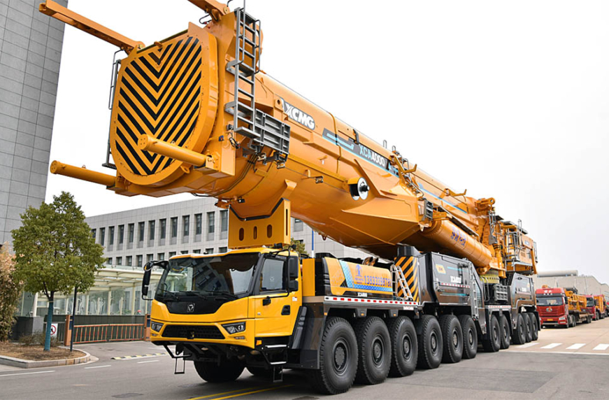 Китайська компанія XCMG презентувала найбільший мобільний кран у світі XCA 4000 – вантажопідйомністю 4000 (!) тонн. На 11-вісному шасі (10 ведучих осей) встановлена шестисекційна стріла, яка висувається вгору на 85 м.