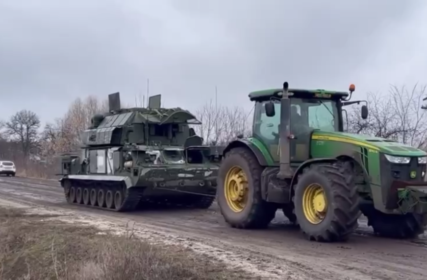 Йде третій тиждень широкомасштабної війни Росії проти України і наші Збройні сили відважно борються, підбиваючи чимало бойової техніки супротивника. Дуже часто свої бронемашини окупанти кидають геть неушкодженими, рятуючись втечею від шквального вогню. Отут і можна знайти добрих людей, які допомагають їх перевезти в безпечне місце. Один із них – простий фермер на колісному тракторі John Deer показав справжній майстер-клас у тому, як треба поводитися із зенітно-ракетним комплексом «Тор».