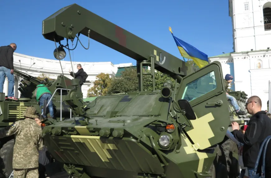 В День защитника Украины, который отмечается 14 октября вместе с Днем украинского казачества, на Михайловской площади в Киеве открылась выставка военной техники.