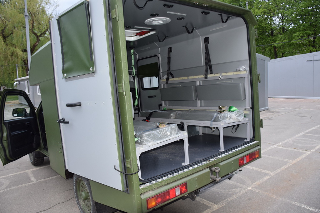 Кузов може вміщати чотирьох поранених на ношах, або вісьмох у положенні сидячи