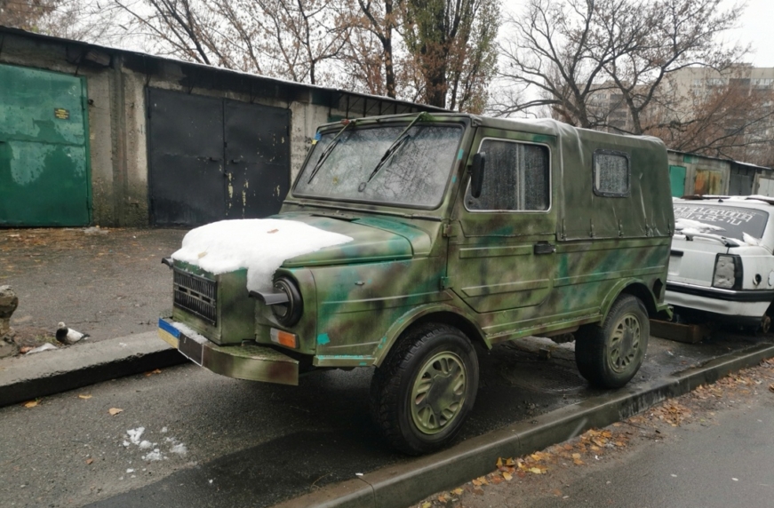Сьогодні для потреб ЗСУ використовують позашляховики різних марок. Зустрічаються з-поміж них і наші вітчизняні «Волинянки». Цей ЛуАЗ-969М днями був помічений на одній із київських стоянок. Машину, скоріш за всього, недавно було передано до тероборони – крім камуфляжу вона отримала характерні чорні таблички під номерні знаки та сині стрічки для розпізнавання свій чужий.