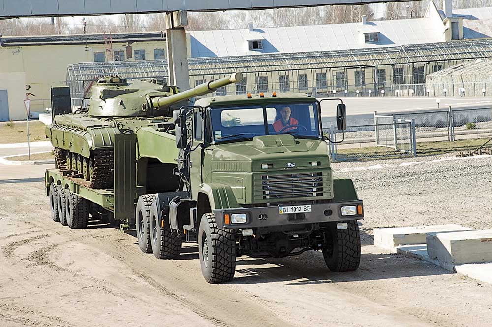 Сідловий тягач КрАЗ Т17.OEX «Титан-02» для перевезення великих вантажів, зокрема танків. Повна маса напівпричепа – до 75 т.