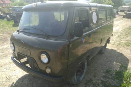 Скорее всего дизель установили на «буханку» позднее. Первоначально военный УАЗ-452 использовался в качестве санитарного автомобиля, о чем свидетельствуют белые кругляши за передними дверьми, на которых в свое время были красные кресты. Внутри на боковинах также можно заметить крепежные элементы под носилки.