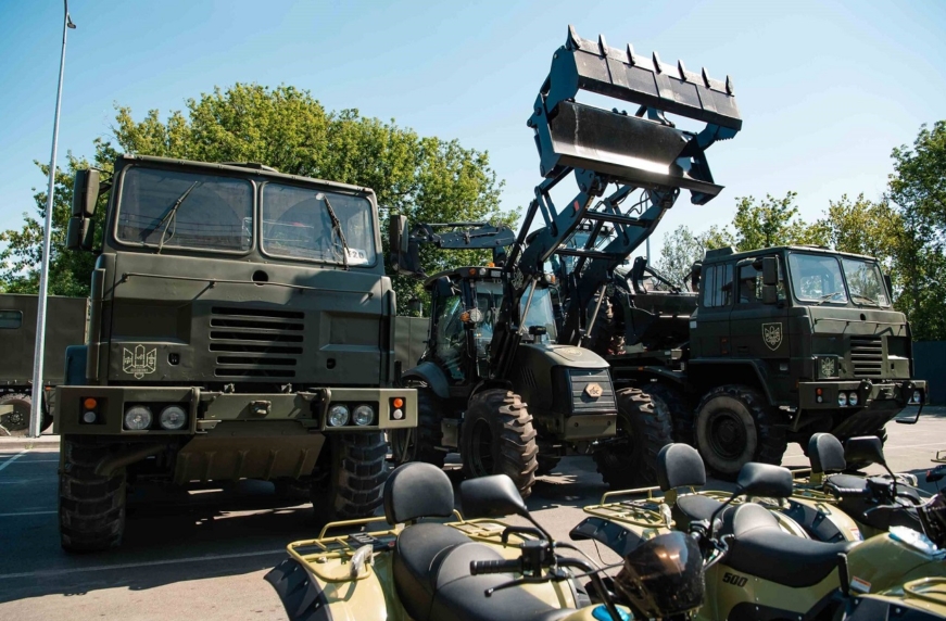 Також у партію увійшли два тягачі Foden 8х6 з системою Мультиліфт, що дозволяє швидко завантажити та розвантажити техніку масою до 18 т. Також відзначимо три нові екскаватори-навантажувачі TDC BL105. Це машини вітчизняного виробництва – Фонд Порошенка законтрактував їхній випуск до кінця року. Тепер по 6 таких красенів щомісяця поповнюватимуть інженерні частини та допомагатимуть зводити фортифікаційні споруди. І нарешті це 27 квадроциклів – високомобільний транспорт, що дуже затребуваний для успішного виконання бойових завдань.
