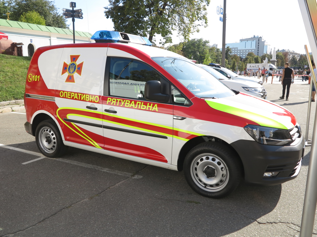 На выставке военной техники в Киеве, приуроченной к 27-й годовщине Независимости Украины, была также представлена техника ГСЧС. Про санитарный автобус Torsus Praetorian на шасси MAN 4х4 и пиротехническую машину «Козак-5» мы уже рассказывали. Остановимся на необычном фургончике Volkswagen Caddy.