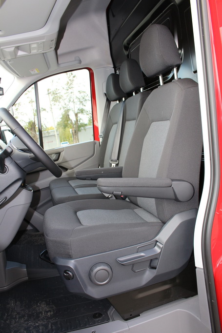 Но в Украине Volkswagen Crafter 2017 пока предложен только с передним приводом, 140-сильным вариантом 2.0 TDI и МКП. Мне понравилось то, как работает коробка. Рычаг расположен традиционно для таких авто на высоком подиуме, передачи переключаются легко и четко, сцепление информативное.