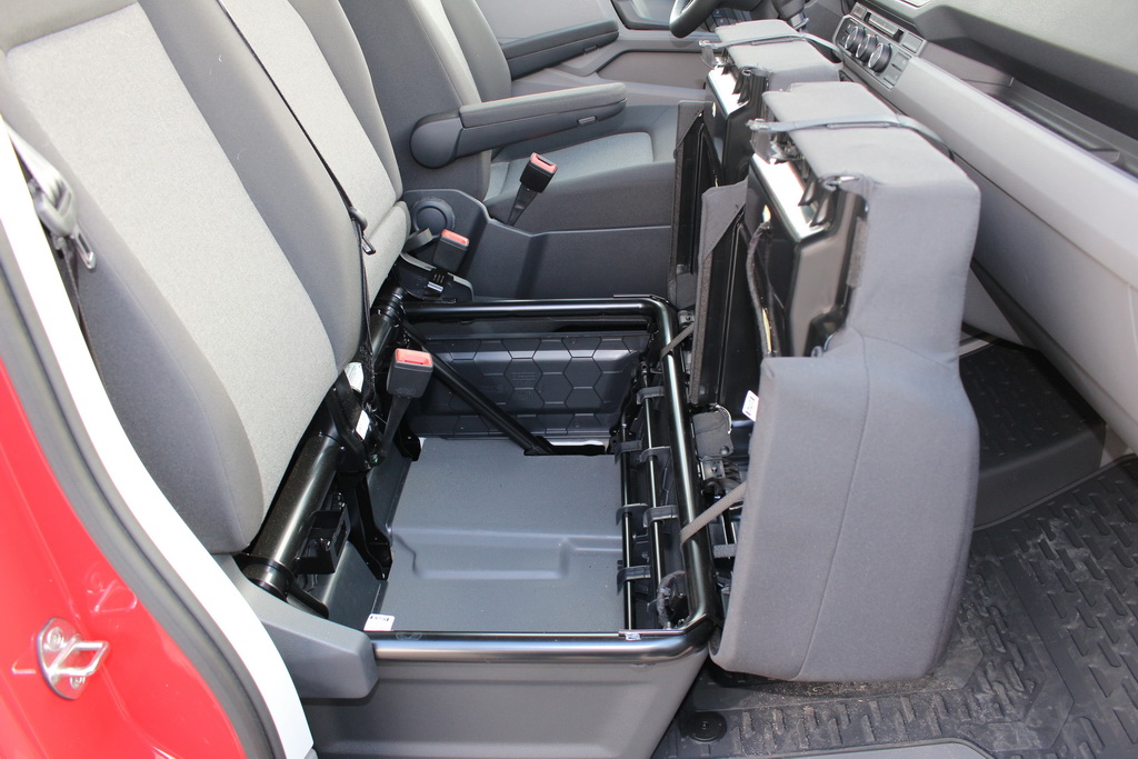 Для правого пассажира можно заказать отдельное кресло с регулировками. Зато на таком вот двойном диванчике можно и подремать в дальней дороге, а под его подушкой устроить просторный тайник, способный вместить средних размеров сумку или пару небольших рюкзаков.