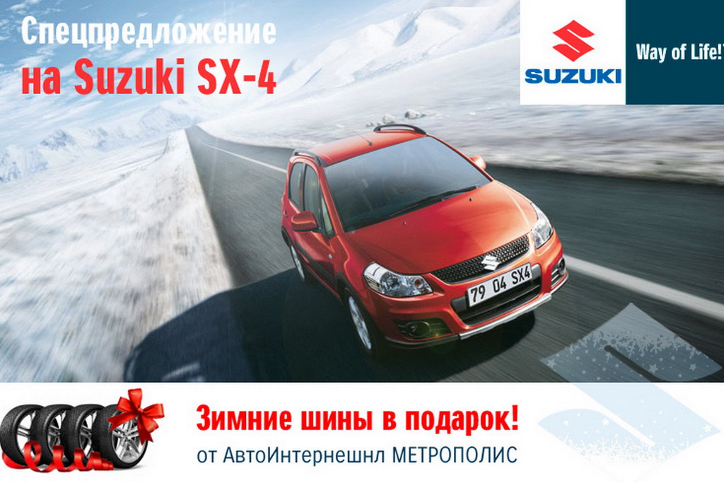«АвтоИнтернешнл МЕТРОПОЛИС», официальный дилер Suzuki в Украине, спешит порадовать своих клиентов специальным предложением накануне зимы: с 1 декабря 2012 года при покупке нового автомобиля Suzuki SX4 мы дарим Вам комплект зимней резины.