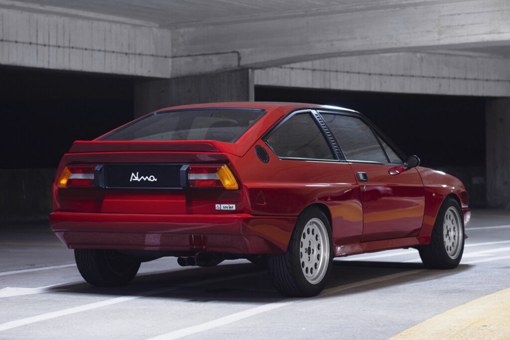 Зразок 2024 виглядає не менш емоційно, ніж його прообраз з 80-х. Кузов Alma Sprint виготовлений з композитних матеріалів, що дозволило знизити вагу до 880 кг. Автомобіль отримав “м’язисті” крила, нові бампери, оригінальні дзеркала та вбудований задній спойлер. “Квартет” фар Hella імплантований в нову перфоровану алюмінієву решітку радіатора.