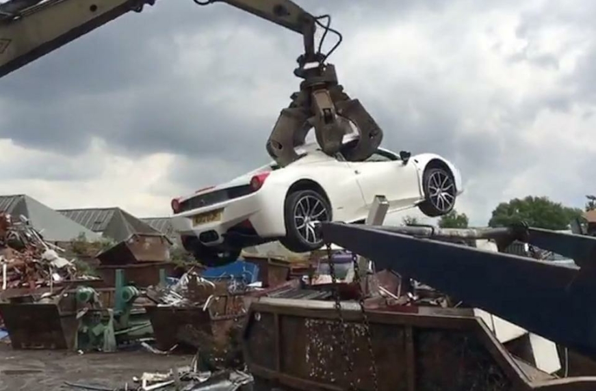 Дорогой Ferrari по ошибке отправили под пресс (видео)