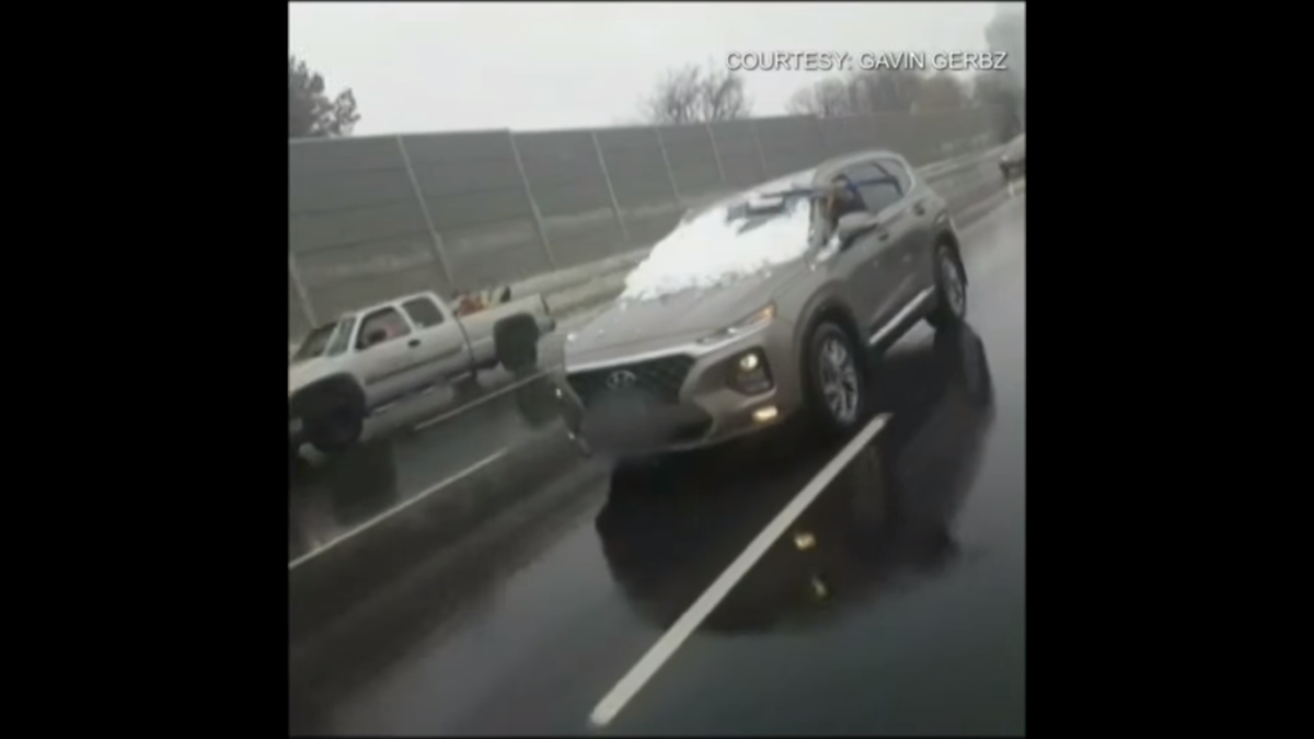 Необычный сюжет удалось снять одному из жителей Торонто, внимание которого привлек Hyundai Santa Fe с полностью заснеженным лобовым стеклом. При этом водитель кроссовера пытался убрать снег вручную, не съезжая с оживленной дороги.
