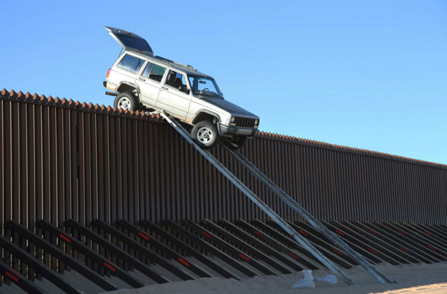 Оригинальную находку обнаружил пограничный американский патруль на одном из безлюдных участков государственной границы США и Мексики. На более, чем 4-метровой высоте на специальном заборе между двумя странами завис вполне исправный Jeep Cherokee. Как он туда попал, стало очевидно сразу: оказавшиеся в необычной ситуации контрабандисты не смогли даже разобрать рампу, по которой планировалось наладить новый «погранпереход».
