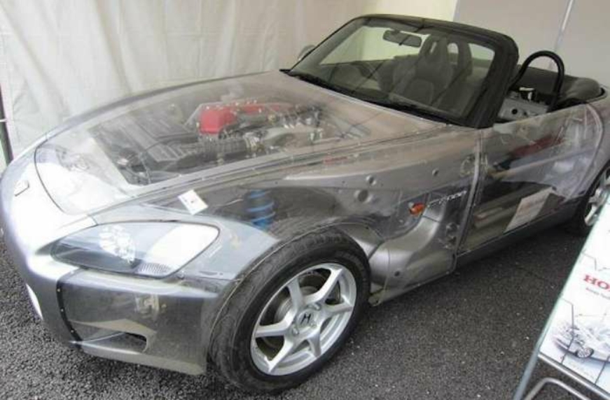 Именно такая Honda S2000 и была замечена на мероприятии в Японии, посвященному 20-летнему юбилею этой яркой модели. Прозрачный кузов позволяет рассмотреть не только мотор, но и всю остальную начинку родстера.