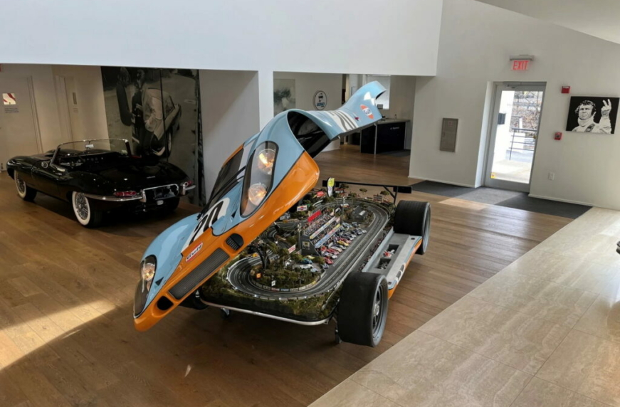 Кілька днів тому аукціон Bring a Trailer продав незвичайний Porsche 917 — карбонову репліку з копією гоночної траси «Сарта» (фр. Circuit de la Sarthe) або «Ле-Ман» у масштабі 1:32 всередині. Кузов автомобіля пофарбований у кольори північноамериканської нафтової компанії Gulf Oil. Піднімається він за допомогою пульта дистанційного керування. Під ним знаходиться дерев’яний макет розмірами 396 см у довжину та 183 см у ширину.